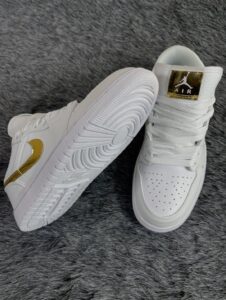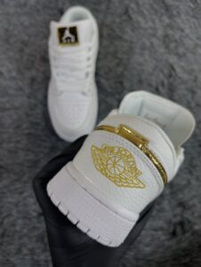 Jordan 1 Low White Gold, el equilibrio perfecto entre elegancia y estilo urbano. ¡Destaca con su toque dorado único y confort diario!